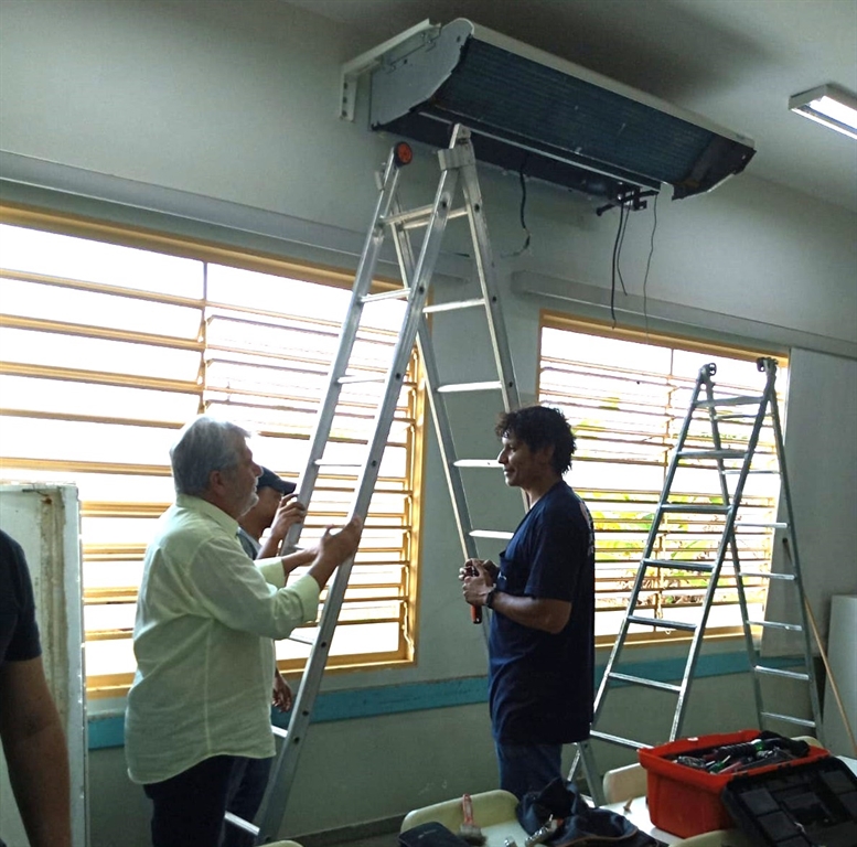 A escola vistoriada ontem, conforme a Administração Municipal, é a 10ª unidade de ensino a receber os trabalhos. A partir de agora, cinco equipes irão trabalhar simultaneamente tanto na substituição de aparelhos que não estejam mais em condição de uso, como na limpeza, troca de peças, fiações e outros cuidados necessários para que funcionem adequadamente.