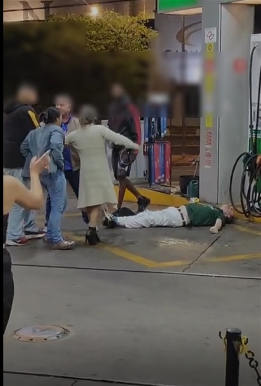 Durante a discussão, um jovem se aproximou rapidamente e desferiu uma forte cotovelada na cabeça da vítima, que caiu desacordada ao lado de uma bomba de combustível. Já no chão, o motorista ainda foi atingido por um chute de outro agressor.