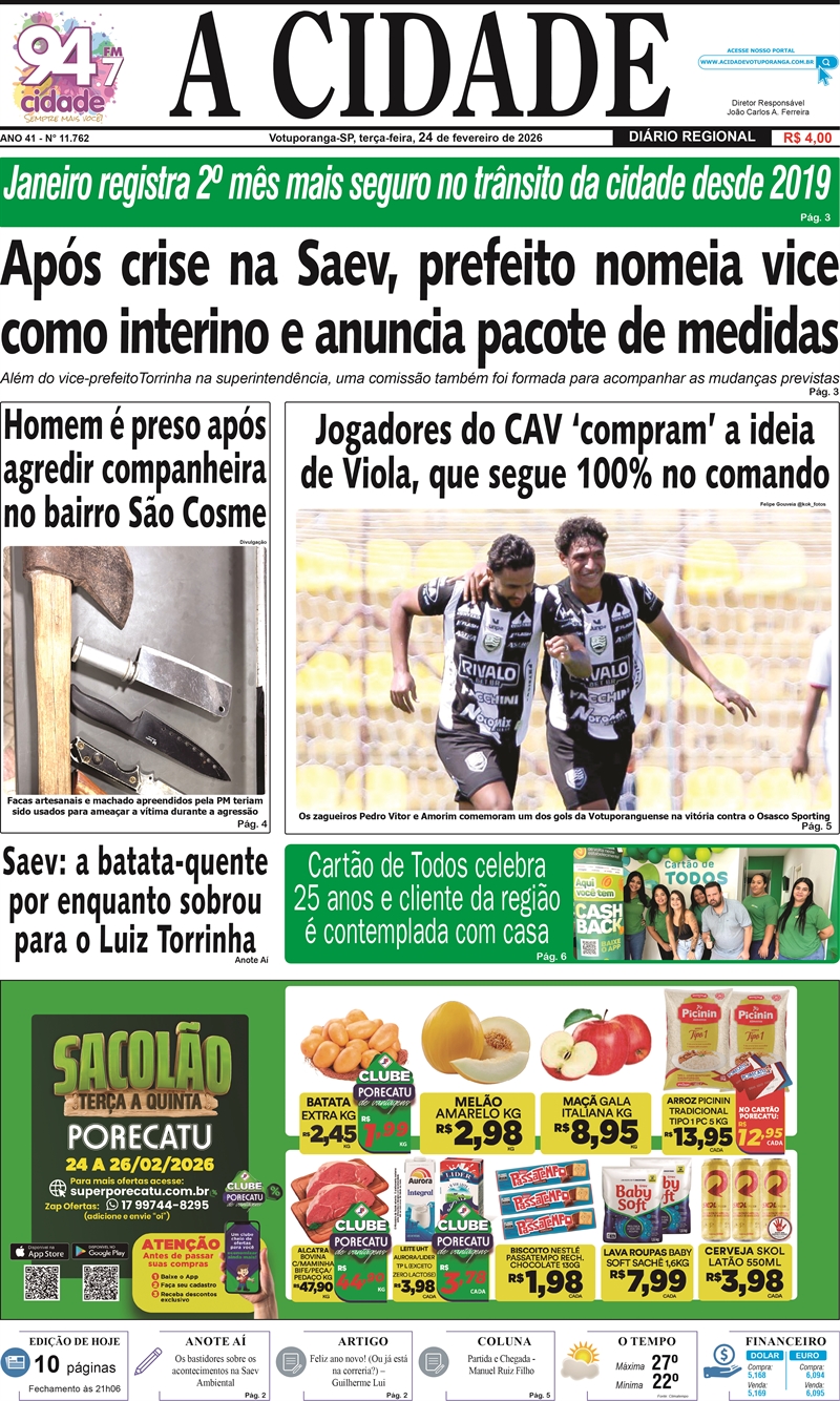 Estamos chegando quase no fim de fevereiro, e o prefeito Jorge Seba e sua equipe continuam correndo pra tentar “apagar o fogo” que se alastrou desde o começo do ano na Saev. Ontem foi a vez de convocar uma coletiva e anunciar um pacote de medidas para a autarquia. Junto do pacote também veio reforço: uma comissão foi montada para monitorar os processos da Saev daqui para frente. Será que agora a Prefeitura enterra o assunto? (Foto: Prefeitura de Votuporanga)