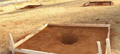 Os buracos para as sapatas que servirão de suporte para os aparelhos de ginástica