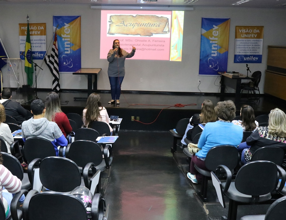 A Pós-Graduação UNIFEV promoveu, no último sábado (dia 4), uma Aula Inaugural da Especialização em Acupuntura e Medicina Tradicional Chinesa. O evento, realizado no Auditório da Cidade Universitária, contou com uma palestra sobre Acupuntura: ferramenta contemporânea complementar à Saúde, ministrada pela Profa. Ma. Ghisele Alves Ferreira.