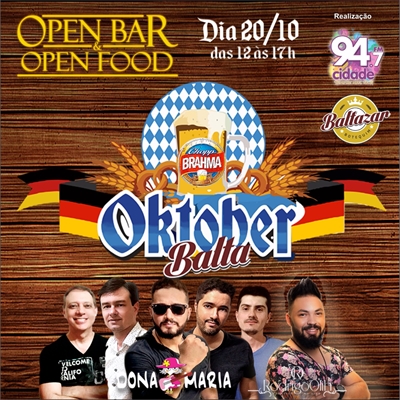 A tradicional festa alemã realizada em outubro será promovida em Votuporanga hoje. A Oktober Balta será realizada no Baltazar Botequim, das 12h às 17h. Esta será a primeira festa open bar de chopp Brahma e open food de comidas típicas no Baltazar Botequim.