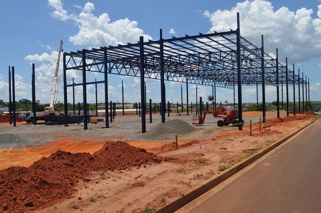 Segundo o gerente da construção, está sendo realizada a implementação de estruturas metálicas e a captação fluvial da loja