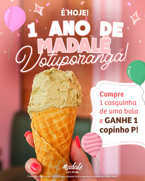 Votuporanga ganhou um novo sabor há exatamente 365 dias. Desde a inauguração, a Madalê não trouxe apenas gelatos; trouxe uma experiência de afeto, qualidade e encontros memoráveis. Foram dias de sorrisos, descobertas de sabores e muita felicidade compartilhada a cada colherada. "Cada visita, cada mensagem carinhosa e cada 'tenha um ótimo momento Madalê' confirmaram que a cidade acolheu a proposta da marca com o coração aberto. Para agradecer por fazerem parte desta história deliciosa, a Madalê preparou uma celebração especial:
