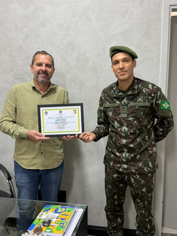 Daniel David, presidente da Câmara Municipal e Votuporanga, e o sargento Jansen Foto: Câmara Municipal