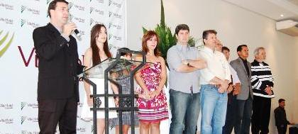 O empresário votuporanguense Valmir Dornelas recebeu ontem autoridades e convidados de toda a região para a cerimônia de inauguração do Ville Hotel Gramadão, localizado na avenida José Marão Filho, 2279. Foram chamados para a tribuna de honra, além de Valmir, sua esposa Kátia e as filhas Bruna e Amanda, os pais dele, Arlindo e Inês Dornelas, o prefeito Nasser Marão Filho, o presidente da Câmara Municipal, Osvaldo Carvalho da Silva, o deputado federal João Dado, o chefe de gabinete do Ministério do Turismo, Gilberto Barbosa dos Santos, o ex-prefeito Carlão Pignatari, e o empresário Euclides Facchini Filho (Kidão), que representou todos os empresários amigos de Valmir.