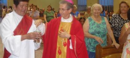 presença de padres da região e diáconos, Dom Paulo celebrou missa de ação de graças