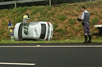 O motorista perdeu o controle e capotou o veículo