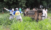 Motorista de automóvel perdeu o controle da direção do veículo após passar sobre brita que havia caído sobre o asfalto, na SP-320