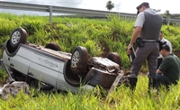 Automóvel Uno seguia sentido Rio Preto/Votuporanga quando saiu da pista e capotou