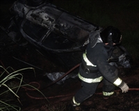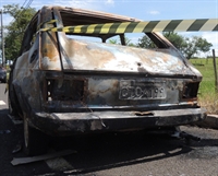 Fiat 147 foi totalmente destruído pelo fogo na madrugada