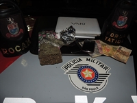 Além do entorpecente apreendido, policiais localizaram uma motocicleta com placa adulterada