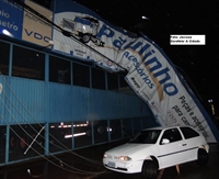 Ventos fortes e chuva na noite deste domingo derrubou galhos, árvores, fios de eletricidade e até fachadas de empresas