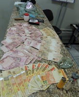 R$1,6 mil e drogas foram apreendidos com o suspeito