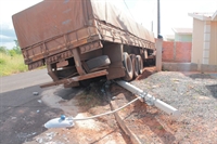 Veículo carregado perdeu o freio e atingiu poste