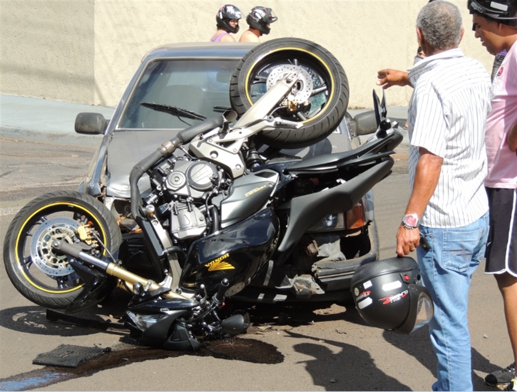 Um impressionante acidente deixou ferido um policial militar de 30 anos por volta das 15h15 deste sábado (2), no cruzamento da rua dos Ipês com a Pará, próximo à igreja Senhor Bom Jesus. A moto que a vítima conduzia, uma Honda Hornet, colidiu frontalmente contra um automóvel Ford Escort.