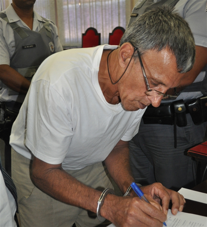 Momento em que Melo ouvia a sentença dada pelo juiz Jorge Canil