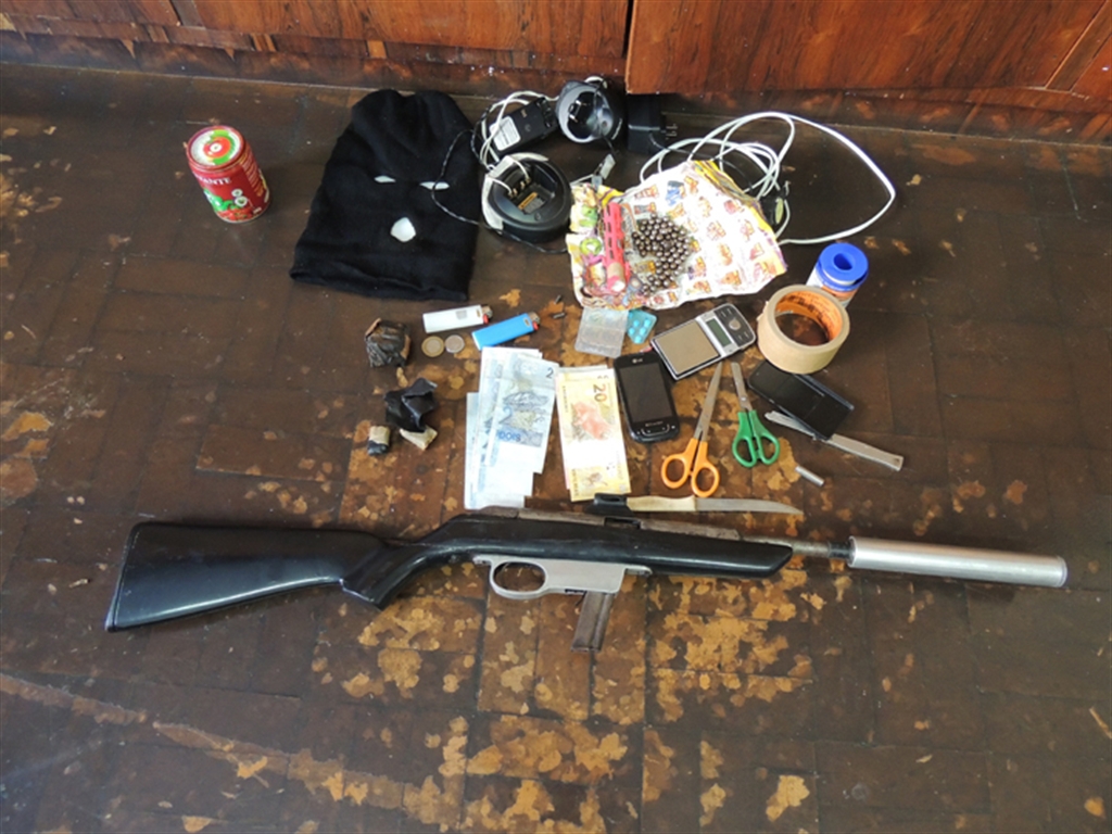 Drogas e espingarda com silenciador foram apreendidos