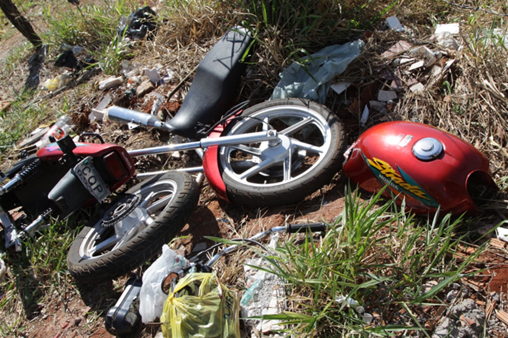 Na tarde de ontem, pouco depois das 14h, um popular passava pela rua Chukichi Kakuda e, em uma área isolada, avistou pedaços da motocicleta e acionou a PM.