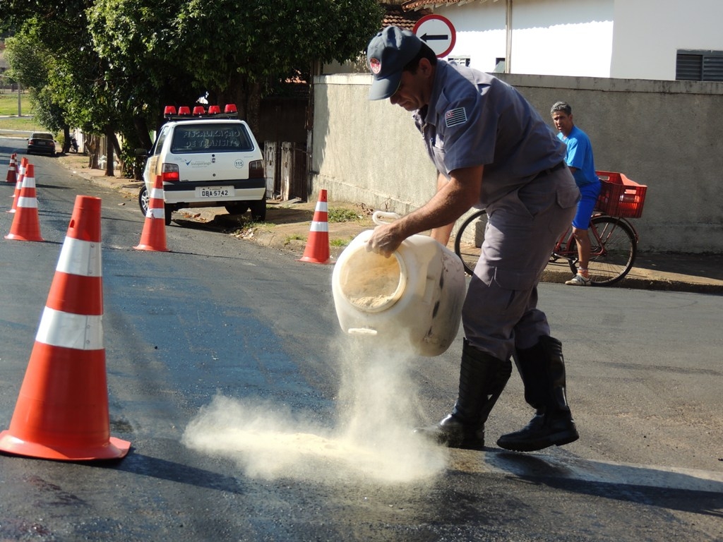 O Corpo de Bombeiros foi acionado para jogar pó de serragem para amenizar o problema. O veículo causador do problema não foi identificado.