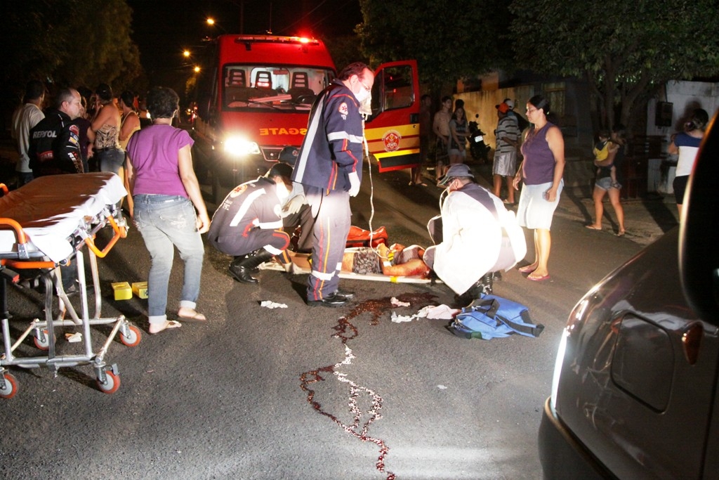 Vítima recebendo atendimento ainda no local pelos socorristas do Samu