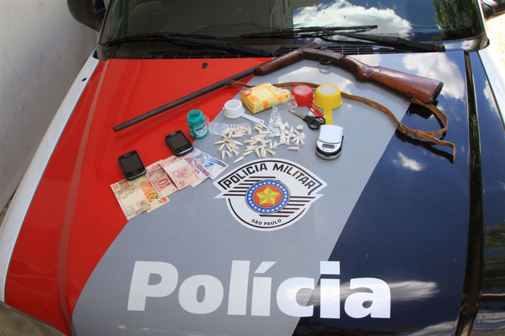 Policiais fizeram busca pelo imóvel, onde localizaram E.B.S., 19, com ele foi encontrada apenas uma quantidade de dinheiro. No interior da residência, próximo ao fogão, militares encontraram uma espingarda de calibre 36, desmuniciada.