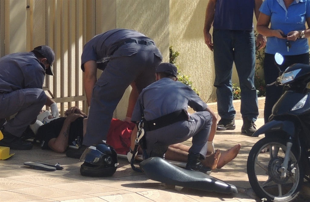 Dois homens ficaram feridos em um acidente na manhã desta terça-feira (27), na rua Espanha, no bairro Pozzobon, em Votuporanga. Uma das vítimas cruzava a rua quando foi atingida por uma motocicleta.