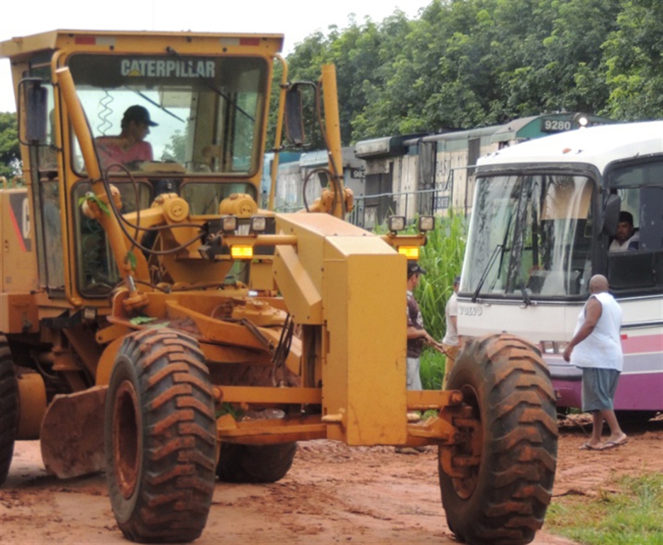 Quando o ônibus passou sobre a linha férrea, a parte de baixo, provavelmente na região do câmbio, ficou encavalada nos trilhos. As rodas patinaram no chão de lama, e o meio do veículo ficou encostado na malha, impedindo que fosse tanto para frente, quanto para trás.