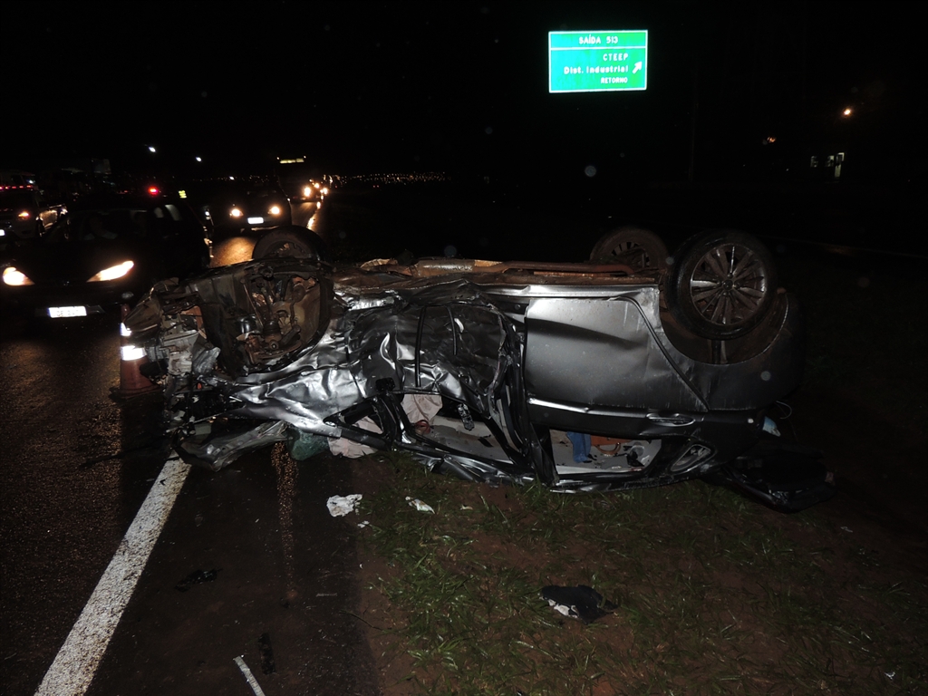 O veículo bateu contra uma galeria de concreto para escoamento de água, no canteiro central e, em seguida, invadiu a pista contrária. Descontrolado, o automóvel atingiu em cheio outro, um GM Corsa, com placas de São José do Rio Preto, conduzido por uma mulher, e capotou.