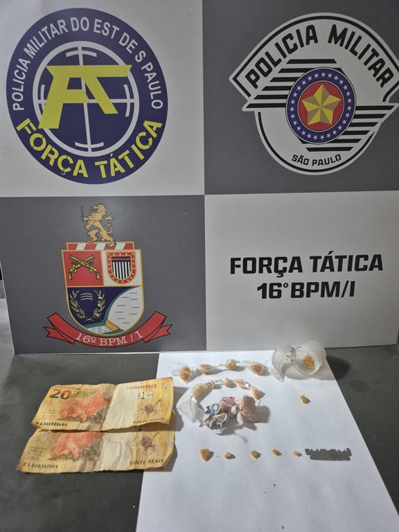 No local, os policiais visualizaram uma aglomeração de pessoas sob as sombras das árvores e realizaram a abordagem. Durante a busca pessoal, foi localizada com uma mulher, identificada como F., certa quantidade de crack já fracionada e pronta para venda, além de outra porção maior que seria dividida, dinheiro em espécie e apetrechos utilizados para o preparo e manuseio da droga.