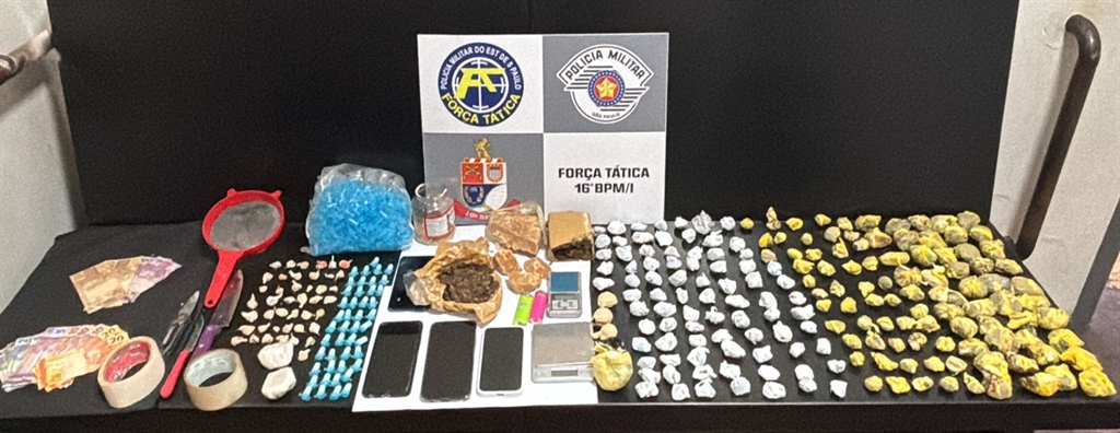 Dentro da casa, os policiais localizaram grande quantidade de crack, cocaína e maconha, além de dinheiro e diversos apetrechos utilizados para embalar e manipular os entorpecentes, caracterizando o imóvel como uma verdadeira “casa bomba”, usada para armazenar e preparar drogas para venda.