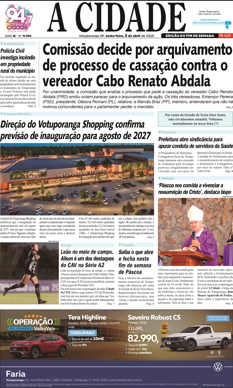 Notícia publicada no site: www.acidadevotuporanga.com.br