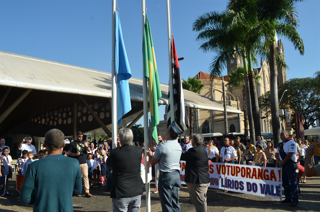 Ao som da Banda Zequinha de Abreu, que executou o Hino de Votuporanga, e da Banda da Polícia Militar, que executou o Hino Nacional, as bandeiras do Brasil, do Estado e do Município foram hasteadas, respectivamente, pelo capitão da PM, André Navarrete, pelo deputado estadual Carlão Pignatari e pelo prefeito Jorge Seba.