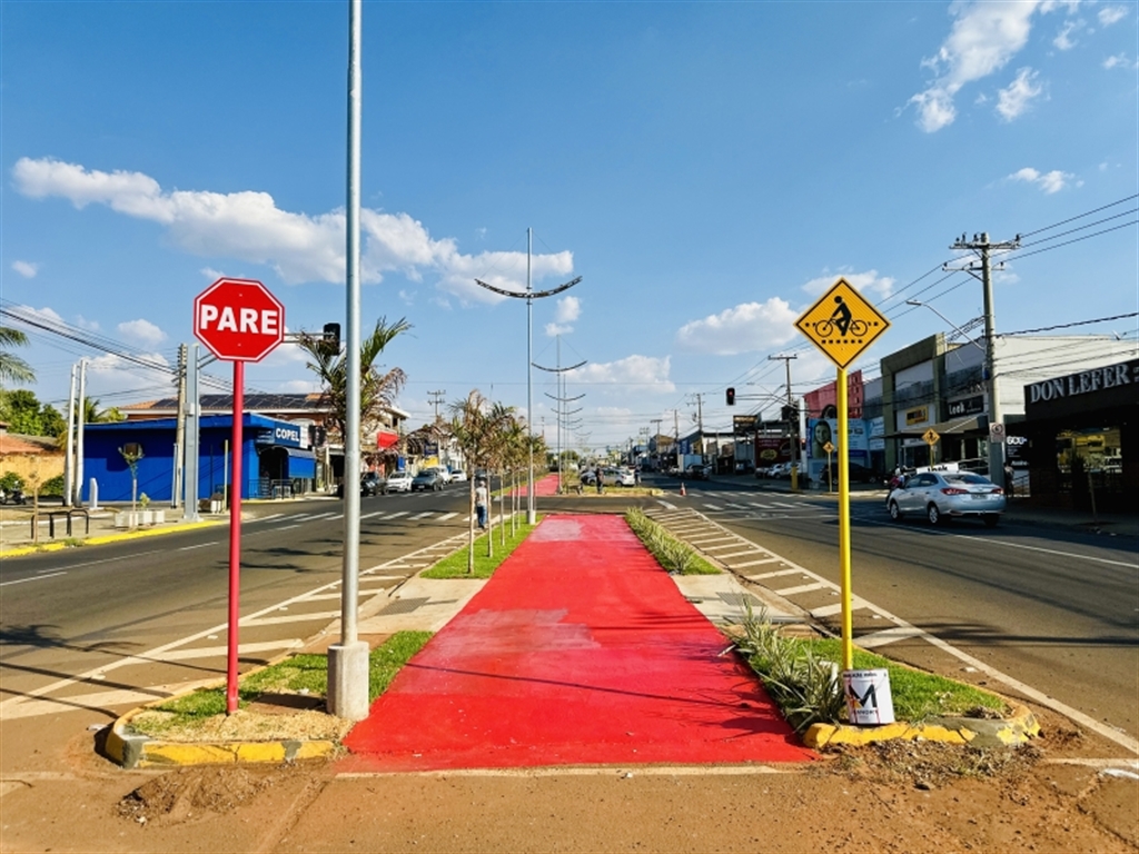 A Prefeitura de Votuporanga pintou a ciclovia e avança agora para a última etapa da revitalização da Emílio Arroyo (Foto: Prefeitura de Votuporanga)