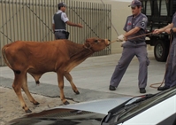 Bovino assustou pedestres e motoristas na região central de Votuporanga e foi capturado após entrar me estacionamento de igreja