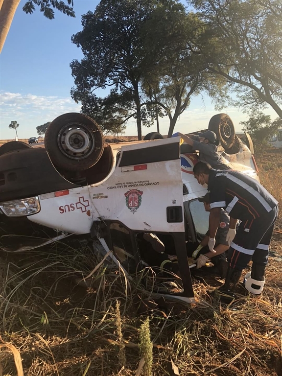 Ambulância de Fernandópolis capotou quando retornava de Cardoso (Foto: A Cidade)