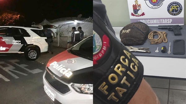 Uma ação rápida da Polícia Militar de Votuporanga impediu, na madrugada desta sexta-feira (30), um assalto e livrou uma família de um sequestro, no Jardim Marin, zona Sul da cidade. Dois homens foram presos e um adolescente apreendido portando um simulacro de arma de fogo, cordas, seringa e um medicamento que supostamente seria utilizado para dopar as vítimas.
