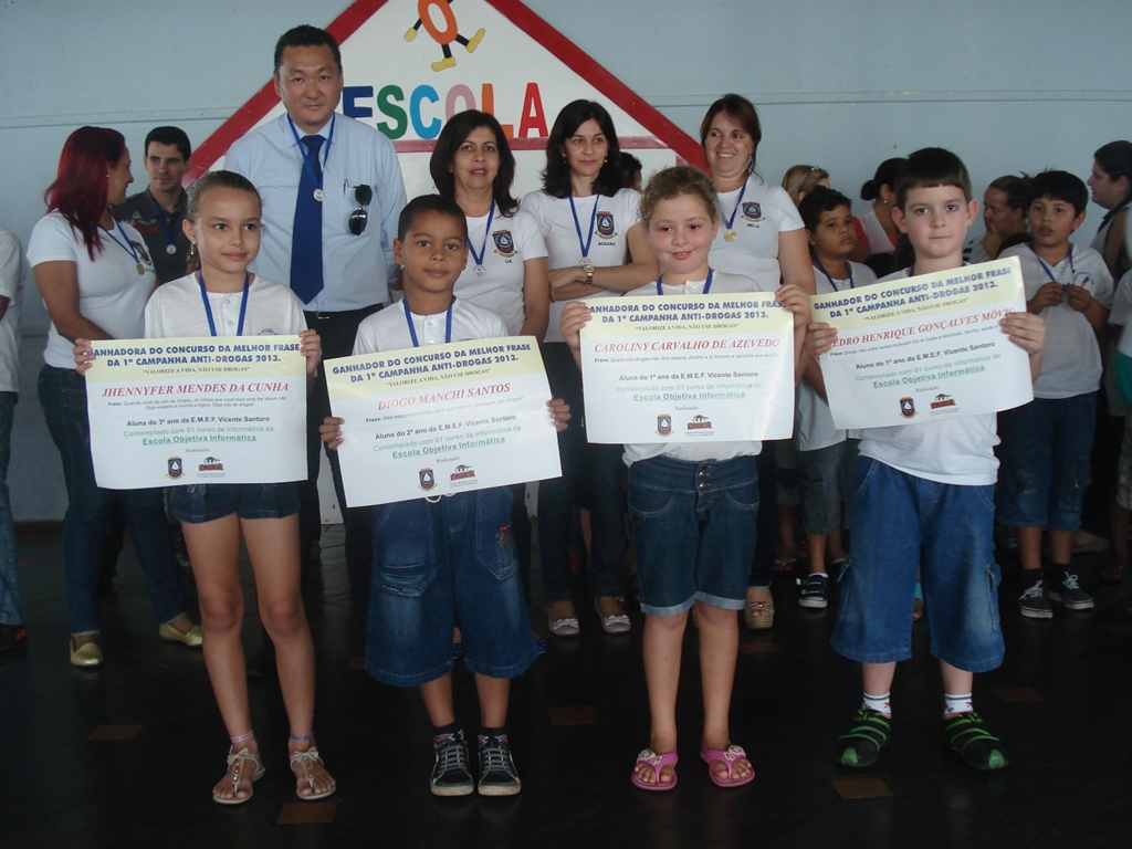 Aconteceu nesta quinta-feira, 25 de abril, na Escola Municipal de Ensino Fundamental (EMEF) “Vicente Santoro”, em Valentim Gentil, a premiação do concurso de frases da campanha antidrogas de 2013, cujo tema foi: “Valorize a vida, diga não às drogas!”.