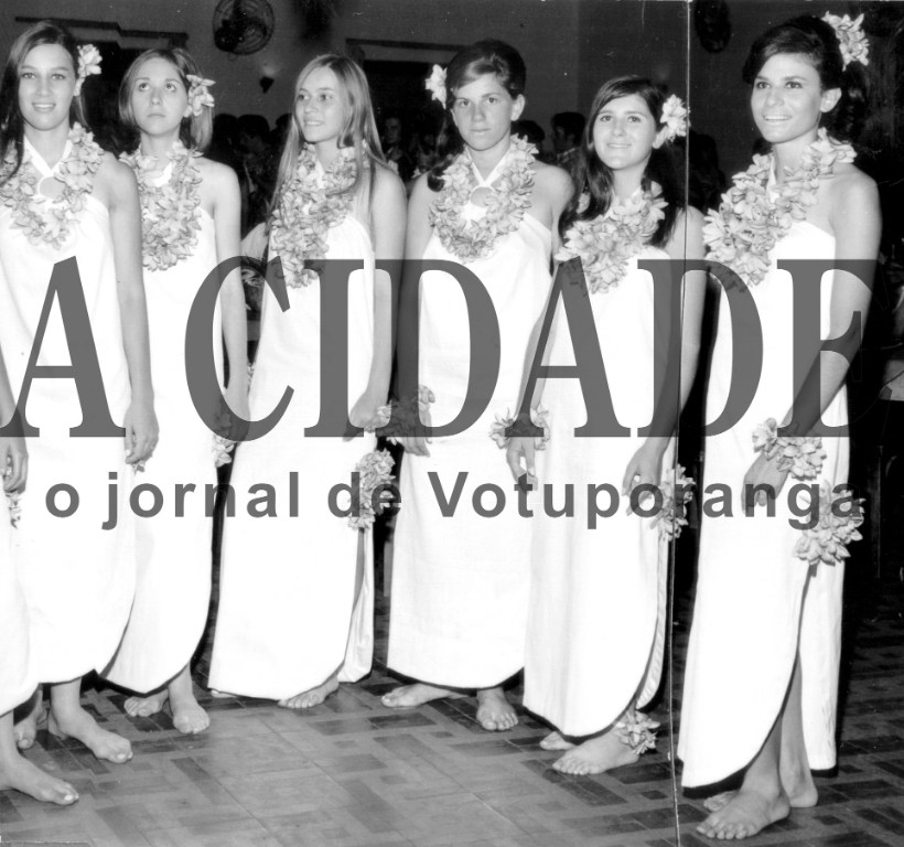 • Elas desfilaram em Noite Hawaiana no Votuporanga Clube no início dos anos 60. O Baile do Hawai, do Votuporanga Clube, fazia parte do calendário social do clube até os anos 80. Sempre foi marcado por muito sucesso. Nos anos 60 havia concurso dos melhores trajes hawaianos, como mostra a foto. Da esquerda para a direita: Sueli Ferrari, Maria Helena Goldner, Marta Goldner, Carminha Valente, Vera Honório e Regina Bernardete.